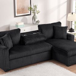 BLACK Corduroy XL U-Sectional With Pull-Out Bed $50 DOWN!$1,299Houston, TX