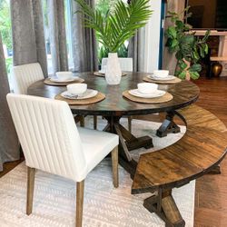 Custom Dining Table Farmhouse Country French Modern Rustic Solid Wood Set Restoration Hardware Insp Bench Hand Built Round Oval Counter Breakfast $400Houston, TX