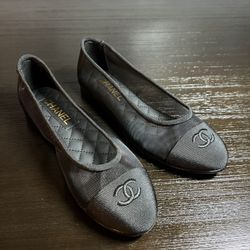 Chanel 25P Black Mesh Grosgrain CC Logo Cap Toe Ballet Flats 39 EU $350Houston, TX