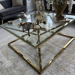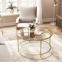 Boutique Home Round Coffee Table With Chic Gold Steel Frame and Tempered Glass Base$100Houston, TX