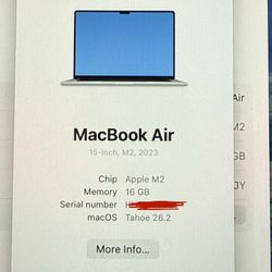 MacBook Air 15 Inch M2 1Tb 16 Gb 2023 Mint $1,000Houston, TX