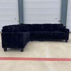 Black Fluffy Corduroy Sectional Couch Delivery Available ๐$680Katy, TX