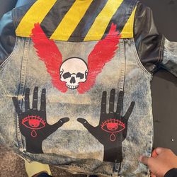 Biker jacket Denim men’s Small Patchwork$60Houston, TX