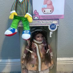 Old Porcelain Doll, My Melody dish, Plushie $25Houston, TX