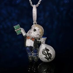 Exquisite Micro Pave 14K White Gold-Plated A+ Cubic Zirconia Premium Roaring Gorilla Pendant With 24" Rope Chain Necklace $22Houston, TX