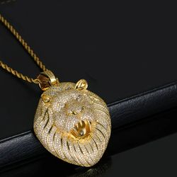 Iced Out Men's 14K Gold-Plated Cubic Zirconia Lion Head Pendant With 24"Rope Chain Necklace $18Houston, TX