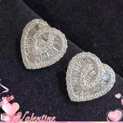 Exquisite Paved Baggett 14K White Gold Plated Cubic Zirconia Heart Shaped Stud Earrings $15Houston, TX