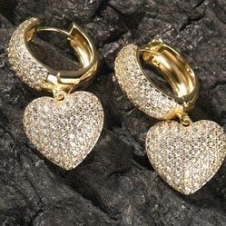 Exquisite Micro Pave 14K Gold Plated Cubic Zirconia Heart Shaped Drop Dangle Earrings $18Houston, TX