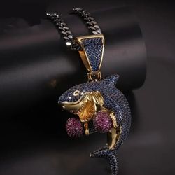 Exquisite Micro Pave 14K White Gold-Plated Blue Purple Cubic Zirconia Boxing Shark Pendant With 24"Rope Chain Necklace $22Houston, TX