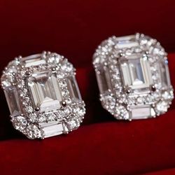 Exquisite Rectangular Baguette 14K White Gold-Plated Cubic Zirconia Men Women Stud Earrings $16Houston, TX