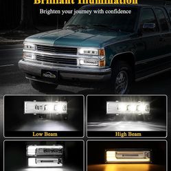 LED Headlights Assembly DOT Approved with DRL Sequential Turn Signal High/Low Beam Start Animation Lights Chrome Replacement for OBS Truck Silverado C$195Katy, TX