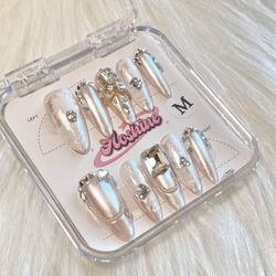Press-On Nails 💅 White French. Diamond Accent|Size XS$25Richmond, TX