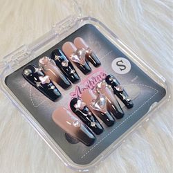Press-On Nails💅 Black & Pink. Diamond Accent | Size S$25Katy, TX