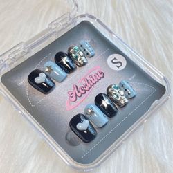 Press-On Nails 💅 Black / Silver / Blue. Heart & star details|Size S $25Katy, TX