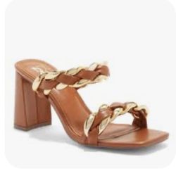 New York & Co cognac woven gold chain block heel sandals Size 7$29Houston, TX