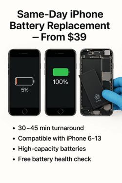 🔋 Same-Day iPhone Battery Replacement – $39+ $39Houston, TX