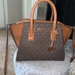 Michael Kors Avril Logo Top-Zip Satchel Gold Toned 100% Leather Detachable Crossbody $190Houston, TX