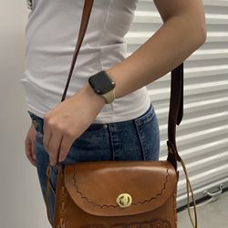 Authentic Cole Haan Camel Leather Crossbody Letter Carrier Purse$65Houston, TX