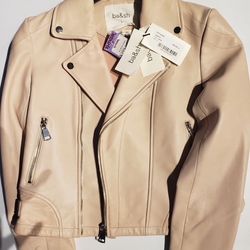 Ba&sh Etty size 3 Beige Calf Leather Moto Jacket$249Houston, TX