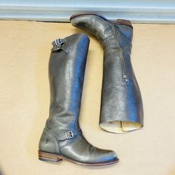 Frye Womens Gray Leather Knee High Cowboy Fashion Buckle Boots Size 6 - Very nice condition $88Houston, TX