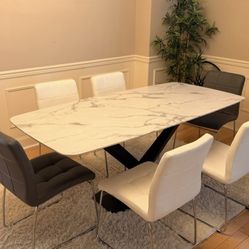Modern Quartz Top Dining Table w/ 6 Chairs (4 White, 2 Gray)$300Houston, TX