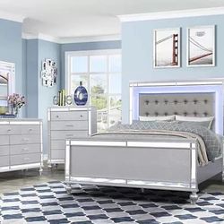 Lodanna Gray Led Panel Bedroom Set, Dresser, Mirror, Nightstand, Bed Frame// Delivery Available $1,009Katy, TX