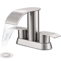 Waterfall Bathroom Sink Faucet Brushed Nickel, Two Handles Bathroom Faucet with Metal Pop up Sink Drain Stopper, Two Or 3 Holes Bathroom Basin Mixer T$40Houston, TX