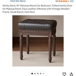 Vanity Stool, 19" Ottoman Bench for Bedroom, Tufted Vanity Chair for Makeup Room, Faux Leather Ottoman with Vintage Wooden Frame, Small Bench, Foot Re$25Houston, TX