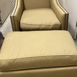 Buttercup Yellow Wingback Chair W/ Ottoman And Decorative Pillow$40Houston, TX