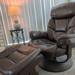 CHITA Genuine Leather Reclining Swivel Chair with Adjustable Headrest and Ottoman for Living Room, Saddle$300Houston, TX