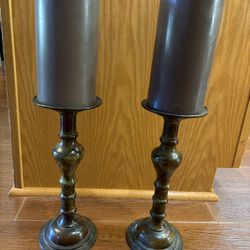 Rustic Brown Pillar Candle Holder Large Pair $35Houston, TX