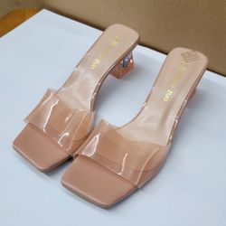 Nanbei Zuo Womens Pink Clear Heel Patent Square Toe Sandals Size 7.5/8$35Houston, TX