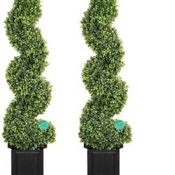 Boxwood Outdoor Topiary Set of 2, 4ft Tall Outdoor Porch Trees, All-Year Green Fake Plant Topiary Trees Artificial Outdoor with Sturdy Pot for Porch O$110Katy, TX