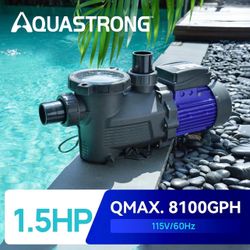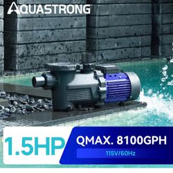 AQUASTRONG In/Above Ground Pool Pump, 1.5 HP Single Speed, 115V, with High Flow 8100GPH, Powerful Self Primming Swimming Pool Pumps with Filter Basket$159Katy, TX