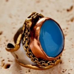 Artesian, genuine blue chalcedony stainless steel cuff ring.$60Sugar Land, TX