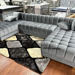 Brand New// Gray Velvet Double Chaise Sectional, Seccional, Couch// Delivery Available $2,089Katy, TX