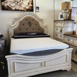 Realyn Chipped White Queen Bed Frame Cama/ Delivery Available $609Katy, TX
