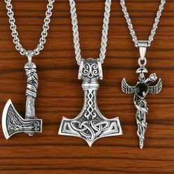 3-Pcs Nordic-Inspired Viking Pattern Amulet Talisman Pendant Necklaces$20Sugar Land, TX