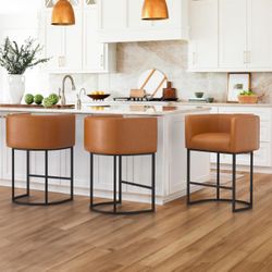 LUE BONA 27" H Counter Height Bar Stools Set of 3, Modern Barrel Counter Stools with Backrest and Arms, Black Metal Frames,Faux Leather Upholstered Ac$430Richmond, TX