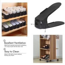 Shoe Slots Organizer, 10 PCS Adjustable Shoe Stacker Space Saver, Double Deck Shoe Rack Holder, Black (Shipping)