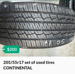 205/50r17 set of used tires CONTINENTAL$200Houston, TX