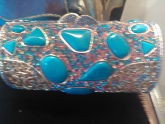 Delicate Crystal Handmade Clutch Purse with Turquoise Design.$110Sugar Land, TX