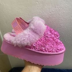 UGG Funkette Chunky Sequin Echinacea Pink Suede Sheepskin Platforms Size $45Sugar Land, TX