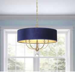 5 Light 26 In Wide Drum Chandelier With Blue Shade In Aged Brass Finish$535Katy, TX