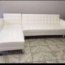 WHITE LEATHER TUFTED SLEEPER SECTIONAL SOFA WITH CHROME LEGS NEW$450Houston, TX