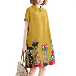 Chic & Trendy Abstract Cat Print Short Sleeve Doll Collar A-Line Women's Dress$24Houston, TX