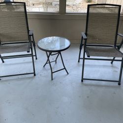 Two Foldable Patio Chairs(new Leg Plastic Feet) + Folding Glass Brown Patio Table $45Georgetown, TX