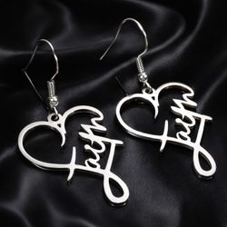 Stainless Steel Cross Heart Faith Dangle Earrings Silver Plated Women$6Harker Heights, TX