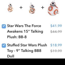 Star Wars BB-8 Talking Plush “9”. $18Killeen, TX