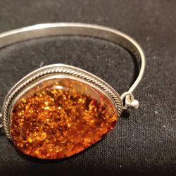 Vintage Sterling Silver Baltic Amber Hinged Bangle Bracelet Excellent Condition $225Harker Heights, TX